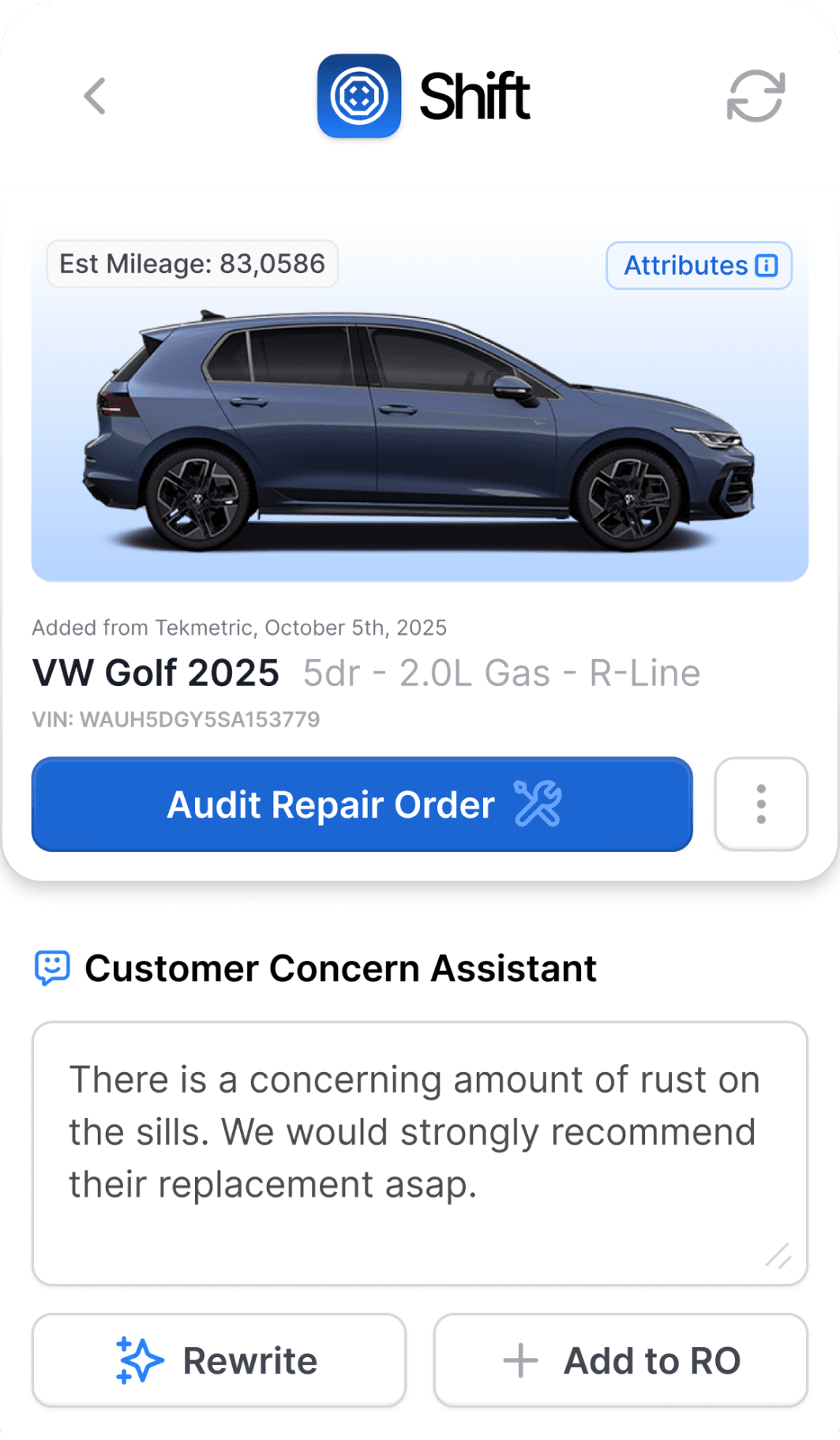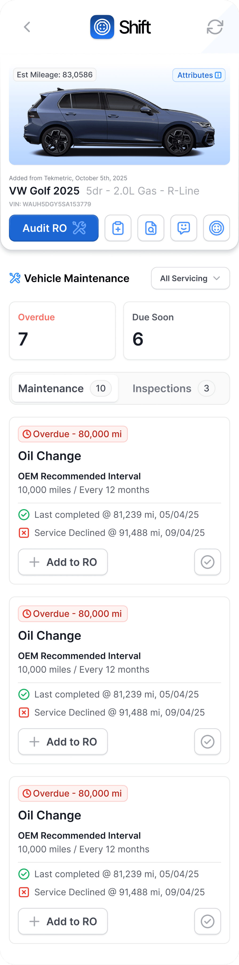 Shift pulls together maintenance, inspections, and recommendations, making it easy to build accurate, complete repair orders.