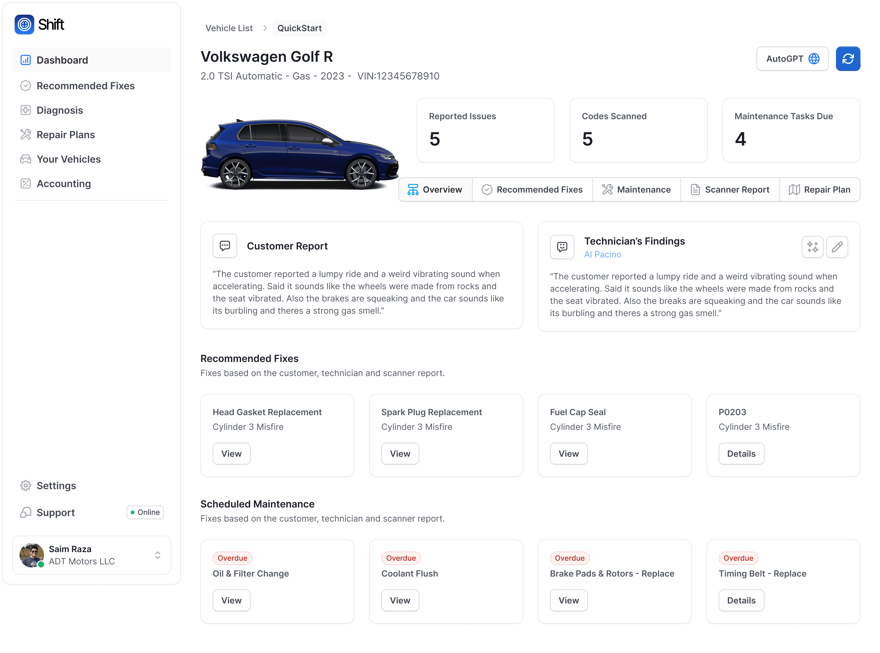 Shift pulls together maintenance, inspections, and recommendations, making it easy to build accurate, complete repair orders.
