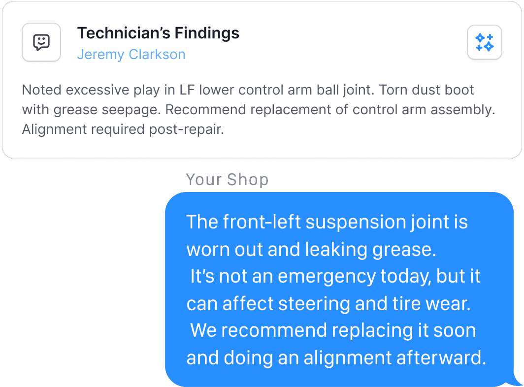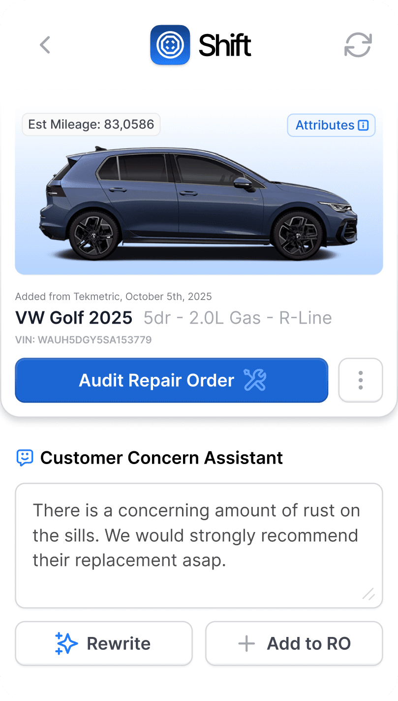 From inspections and customer concerns to diagnostic findings, Shift ensures your writing is concise and professional.